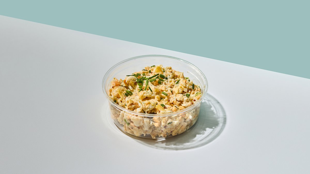 סלט ביצים בהכנה ביתית מביצי חופש, איולי, צלפים, עירית, מלפפון חמוץ.