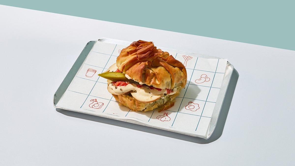 בורקס מקמח מלא, נאפה במקום, במילוי גבינת הבית ונגיעות של אורגנו טרי