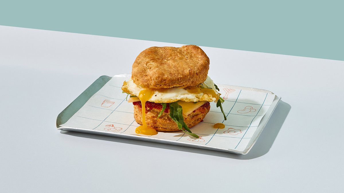סקון מלוח בהכנה ביתית, ממולא בגאודה, עגבניות מיובשות, ביצת עין ואורוגולה