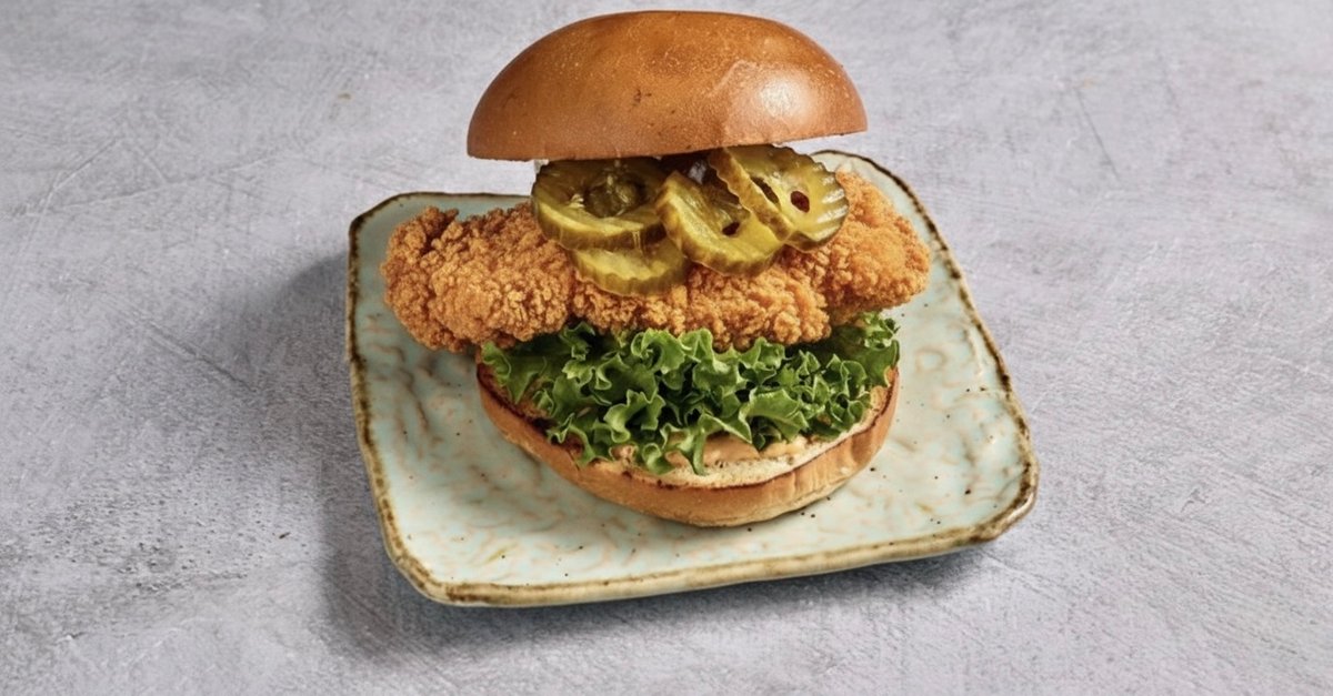 עוף קריספי, חסה, פיקלס, רוטב חריף