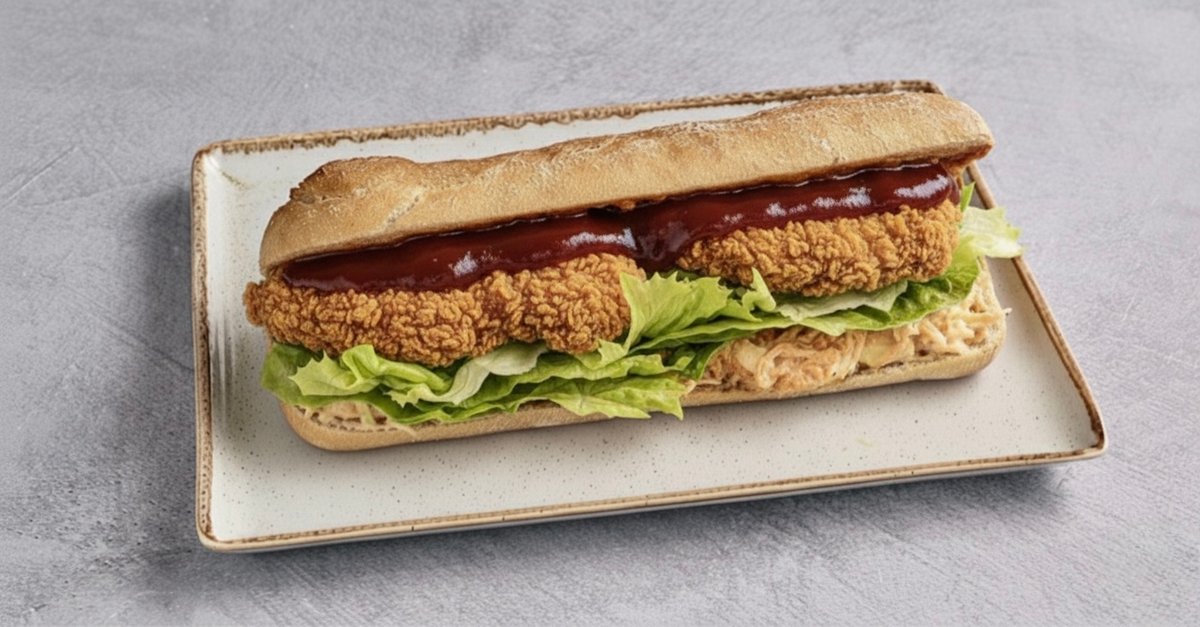 עוף קריספי, חסה, רוטב ברביקיו, קולסלאו