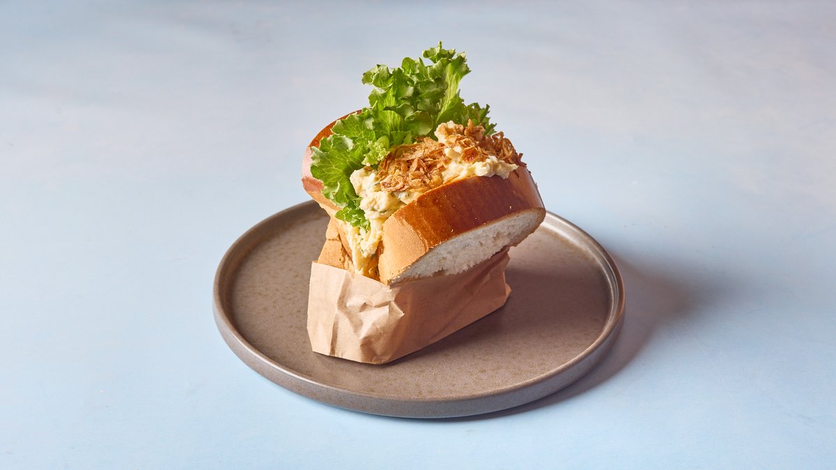 סלט ביצים, בצל ירוק, קריספי שאלוט ואורוגולה