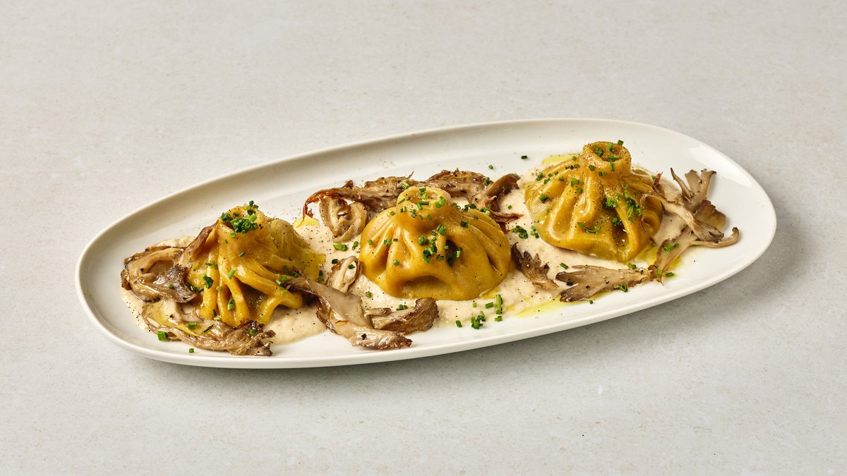 חיניקלי פטריות על קרם תירס לבן ופטריות יער