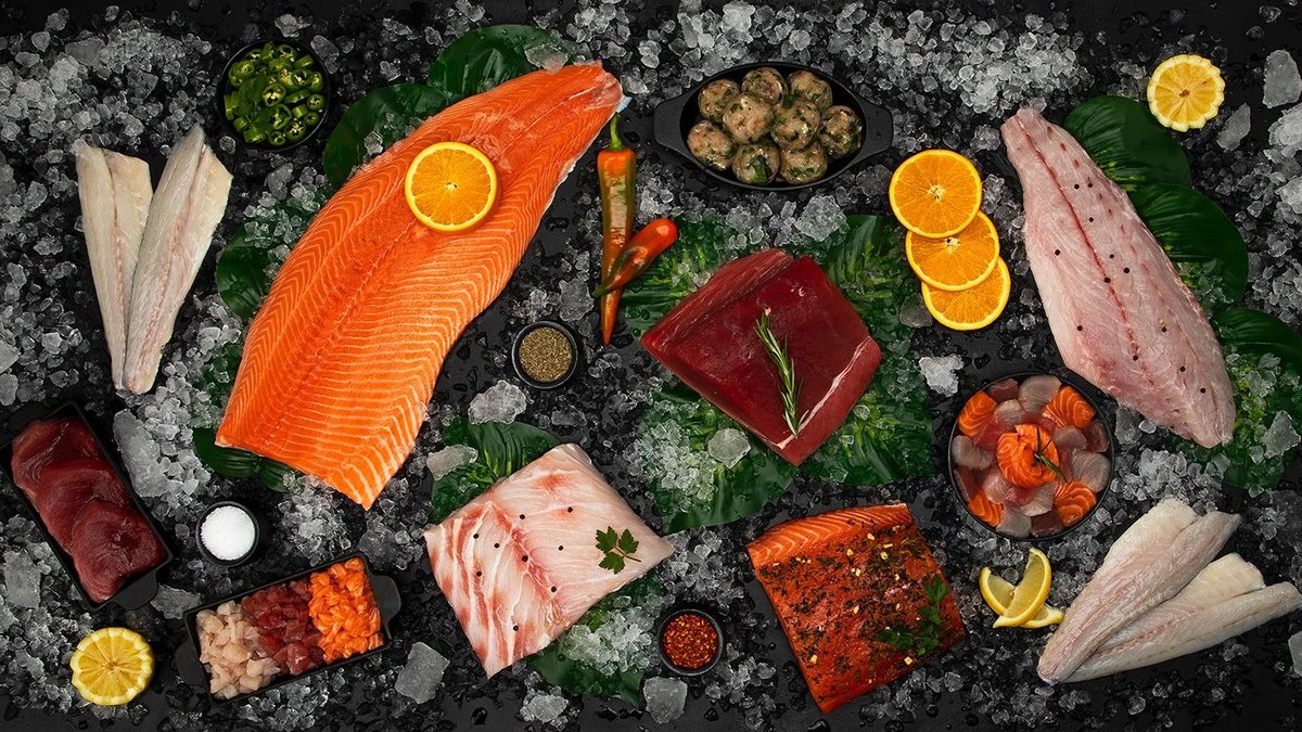 Selection of fresh fish, sea fish, pool fish, import fish and a selection of gourmet products