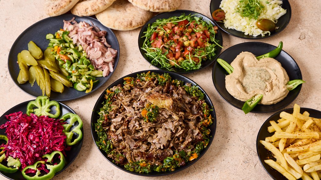סלטים וממרחים לבחירה מוגש עם חמוצים
