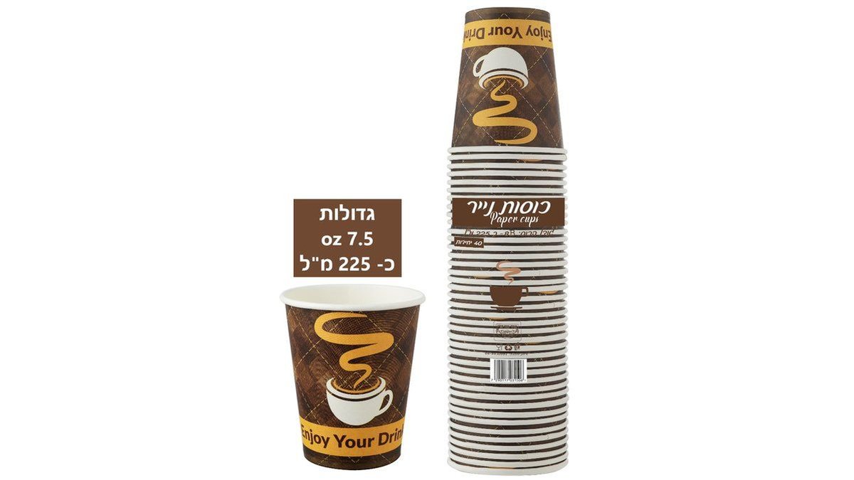 כוסות נייר גודל 8׳ שווה 40 יחידות