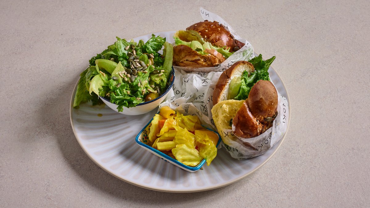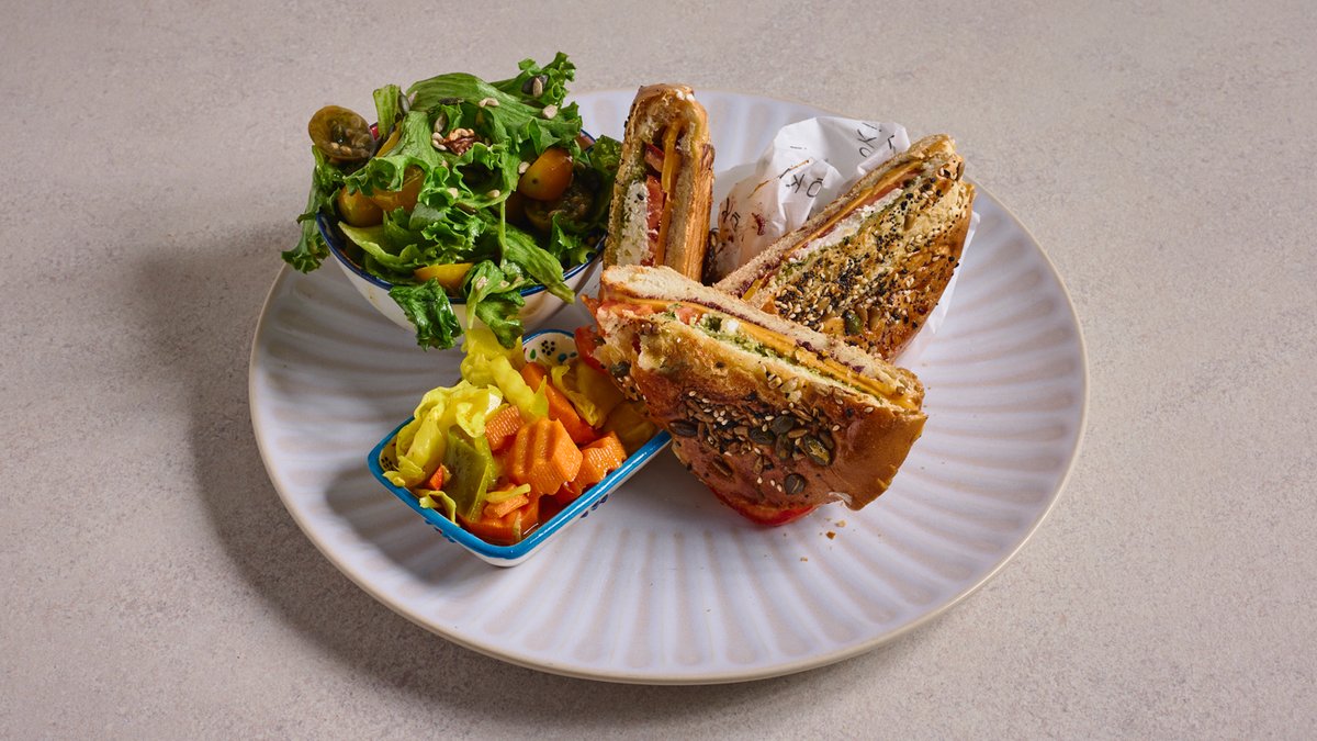 כל הכריכים מוגשים עם סלט אישי וחמוצי הבית