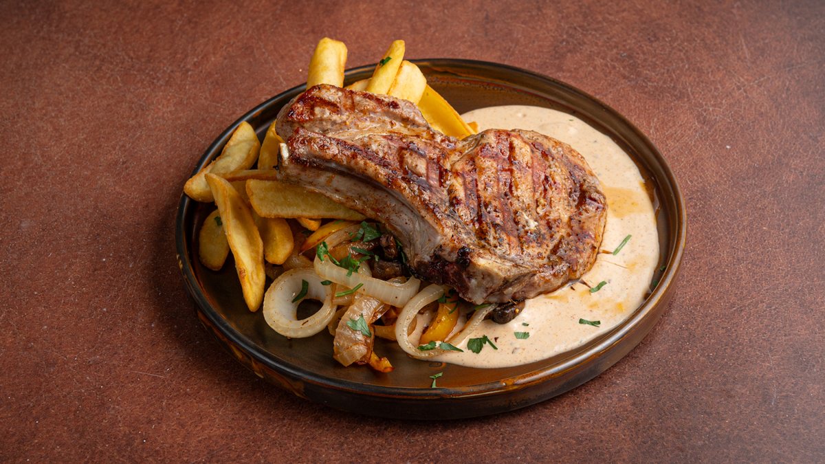 עם בצל ופטריות מוקפצים ,עם תוספת לבחירה