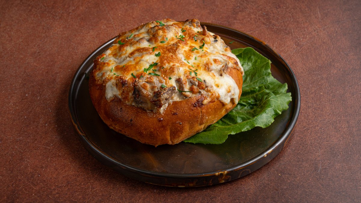 ממולא בקוביות חזה עוף, פטריות ברוטב אלפרדו שמנת. מוקרם עם גבינה