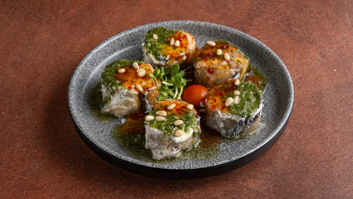 ממולא בגבינת שמנת ,רוטב פסטו וצי׳לי מתוק