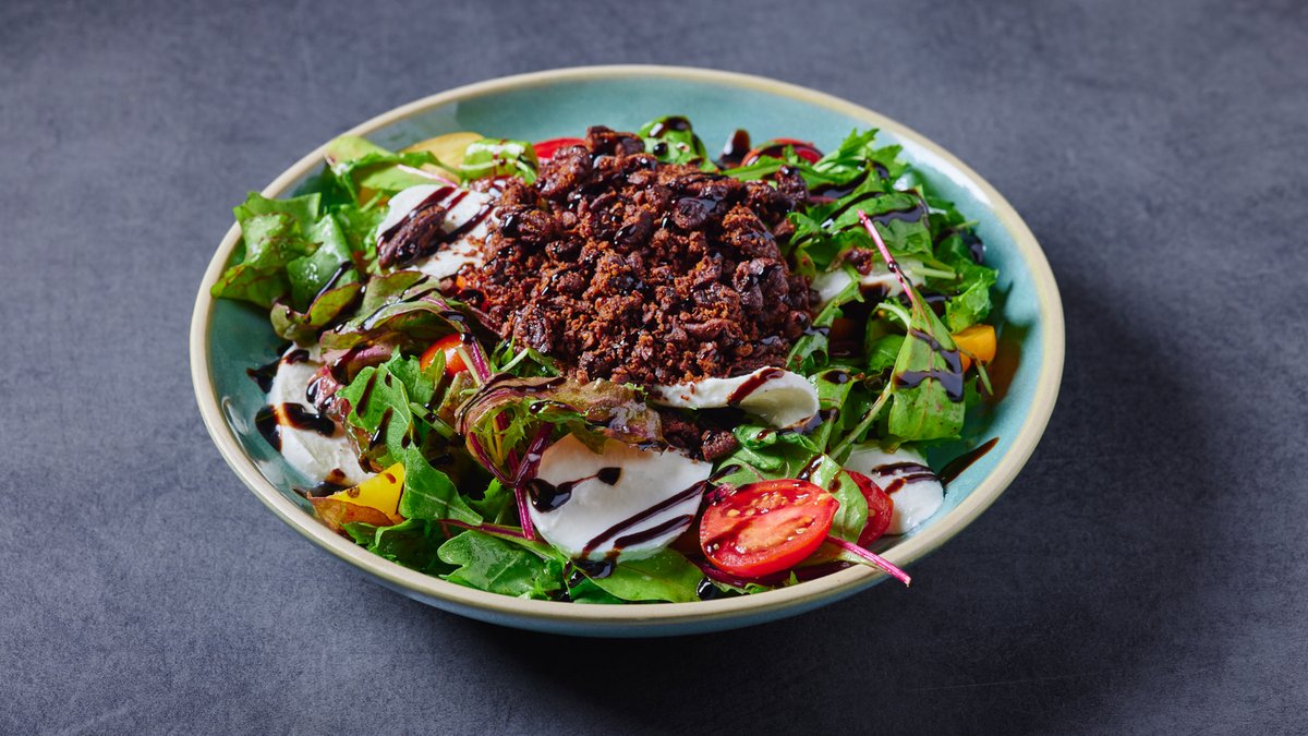 עגבניות שרי, עלי בייבי, מוצרלה פרסקה, פקאן ובלסמי