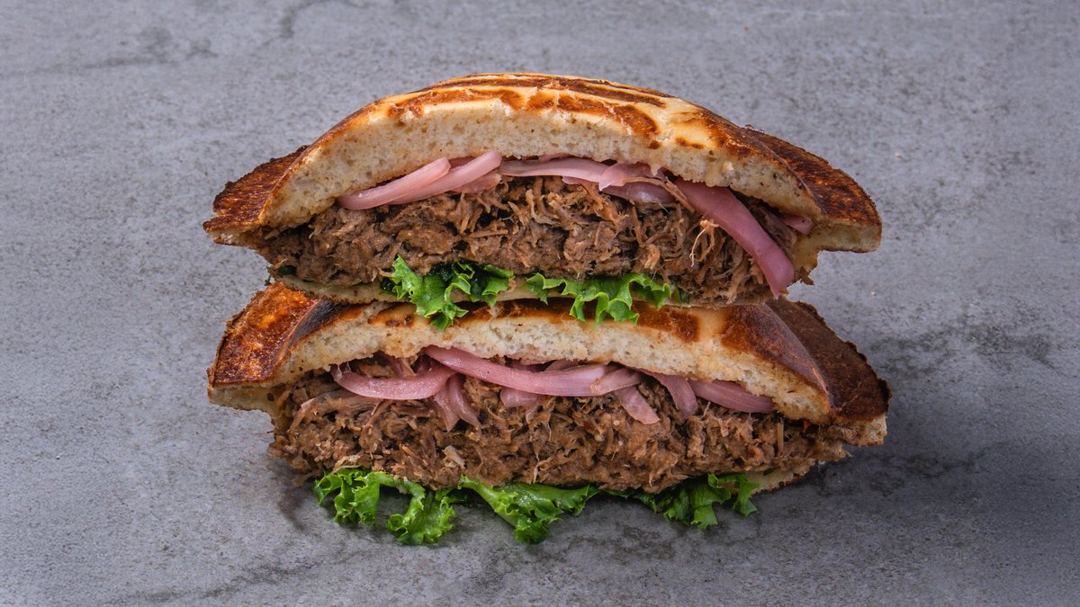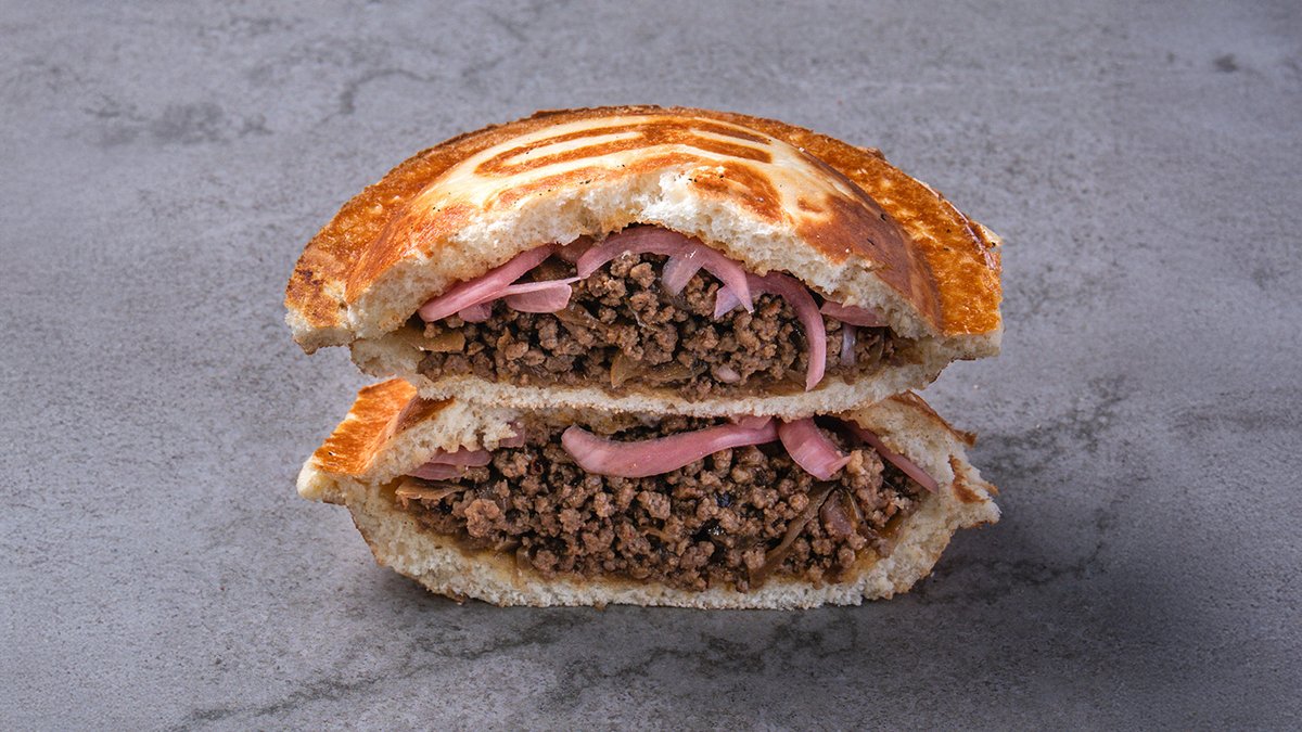200 גר׳ בשר בקר טחון ומעורבב עם רטבים ובצל מטוגן, בצל סגול מוחמץ ורוטב בבא | מוגש עם רוטב לבחירה בצד