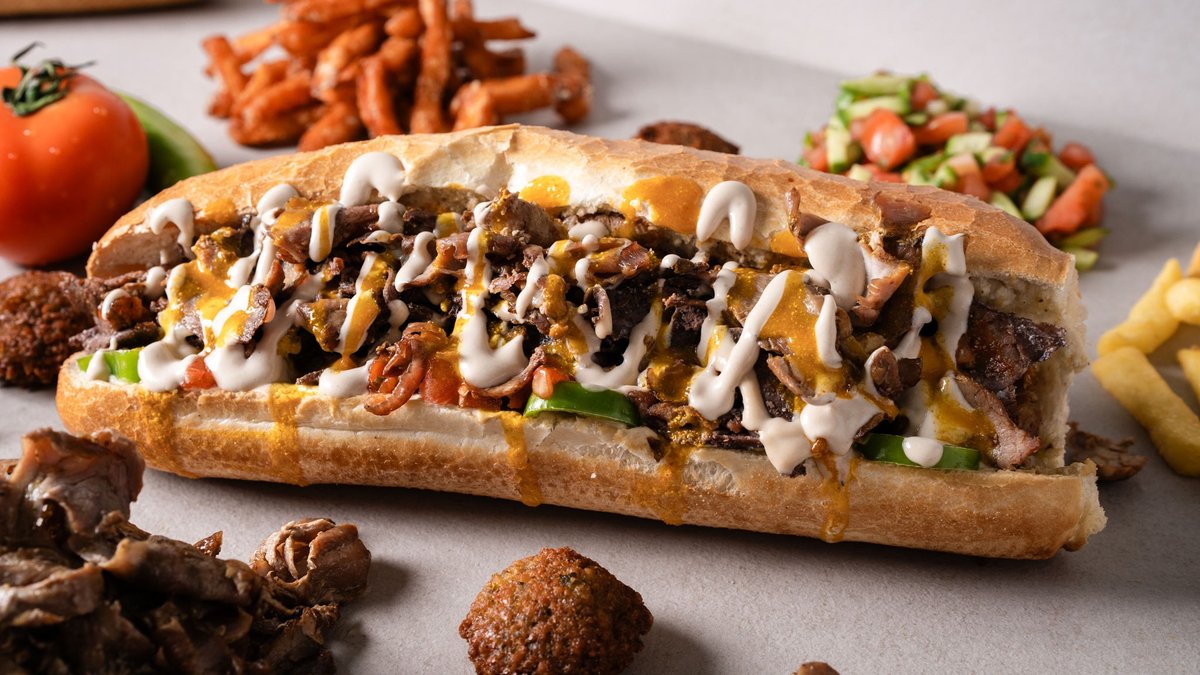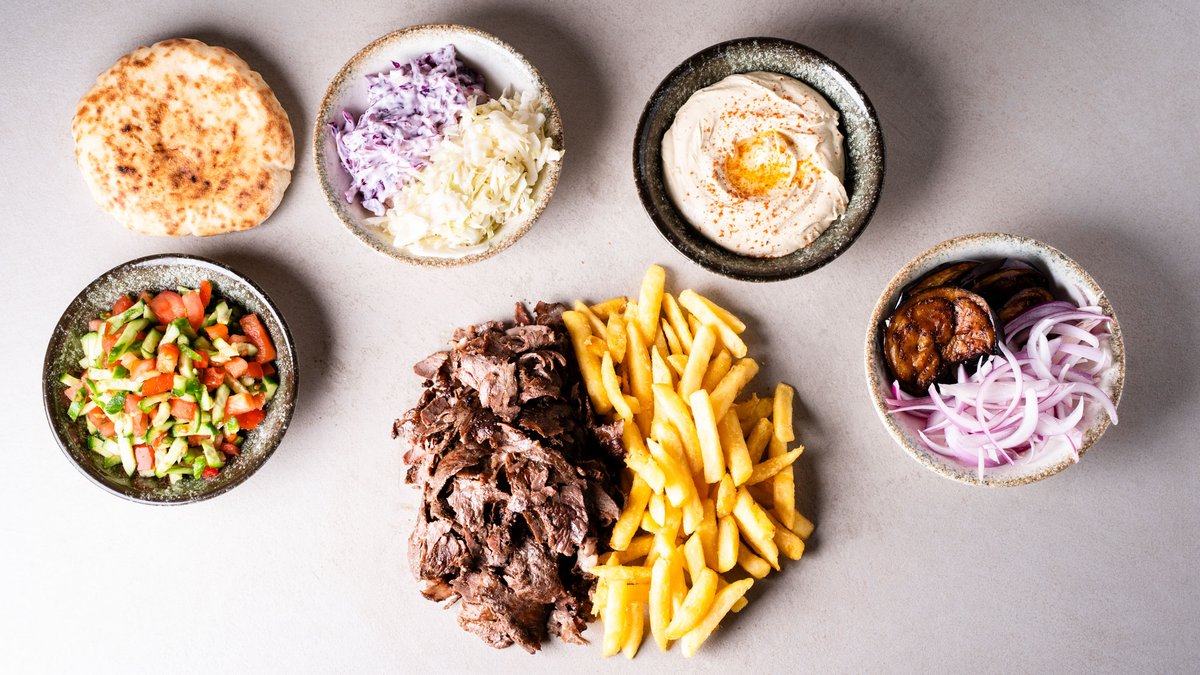 שווארמה עם סלטים וממרחים בלחם לבחירה
