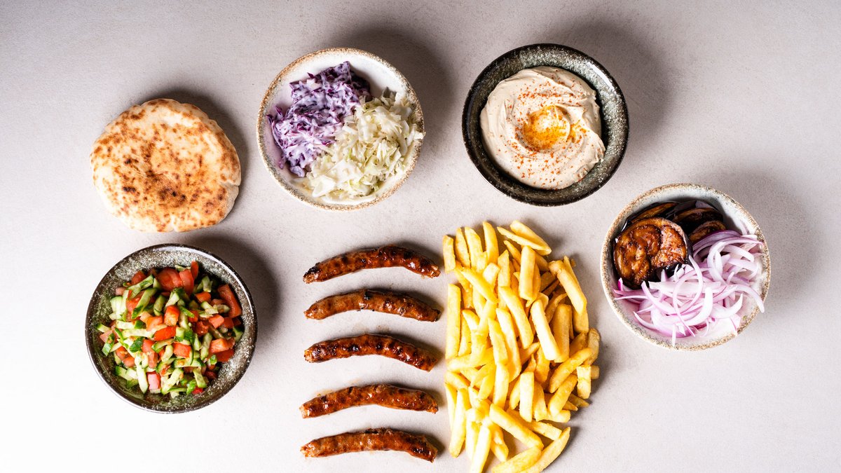 נקניקיה עם סלטים וממרחים בלחם לבחירה