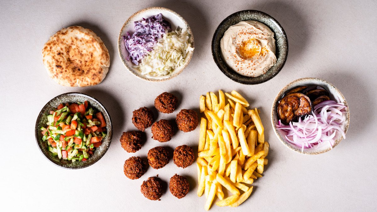 פלאפל עם סלטים וממרחים בלחם לבחירה