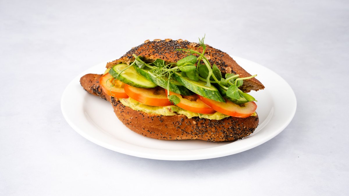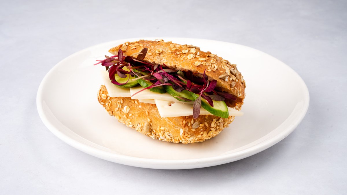 לחמניית כומין דגנים עגבנייה, מלפפון, עלי אלפלפה