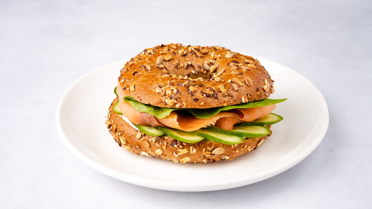 בייגל כוסמין, גבינת שמנת, חסה ומלפפון