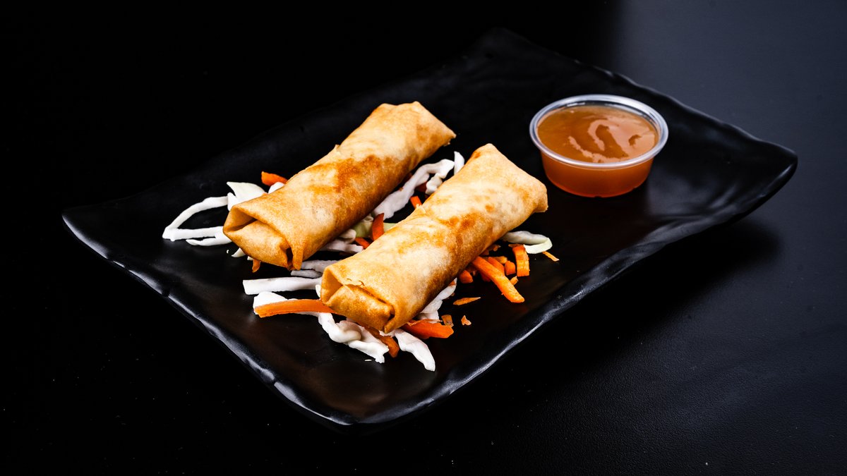 אגרול במילוי ירקות מוקפצים מוגש עם רוטב חמוץ מתוק