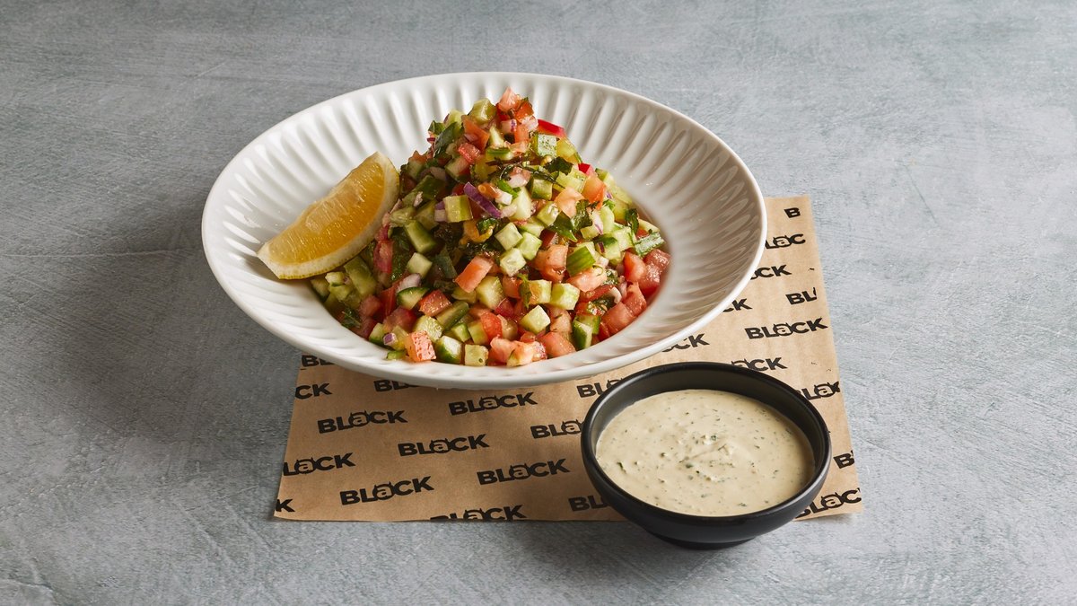 בשר עגל ובשר טלה מתובלים לשלמות, מוכנים בגריל ומוגשים על פיתה גירוס עם סלט ירקות קלויים ומעט בצל סגול בסומאק וגם קוקוט טחינה.