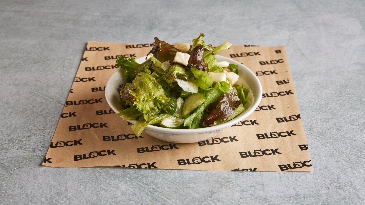 גזר, קולורבי, מלפפון, שרי, חסה לאליק, פלפל, בצל סגול, צנוניות, נענע, גבינת פטה, ברוטב ויניגרט מייפל אורגני. ניתן לקבל מנה זו עם רוטב שמן זית ולימון במקום מייפל