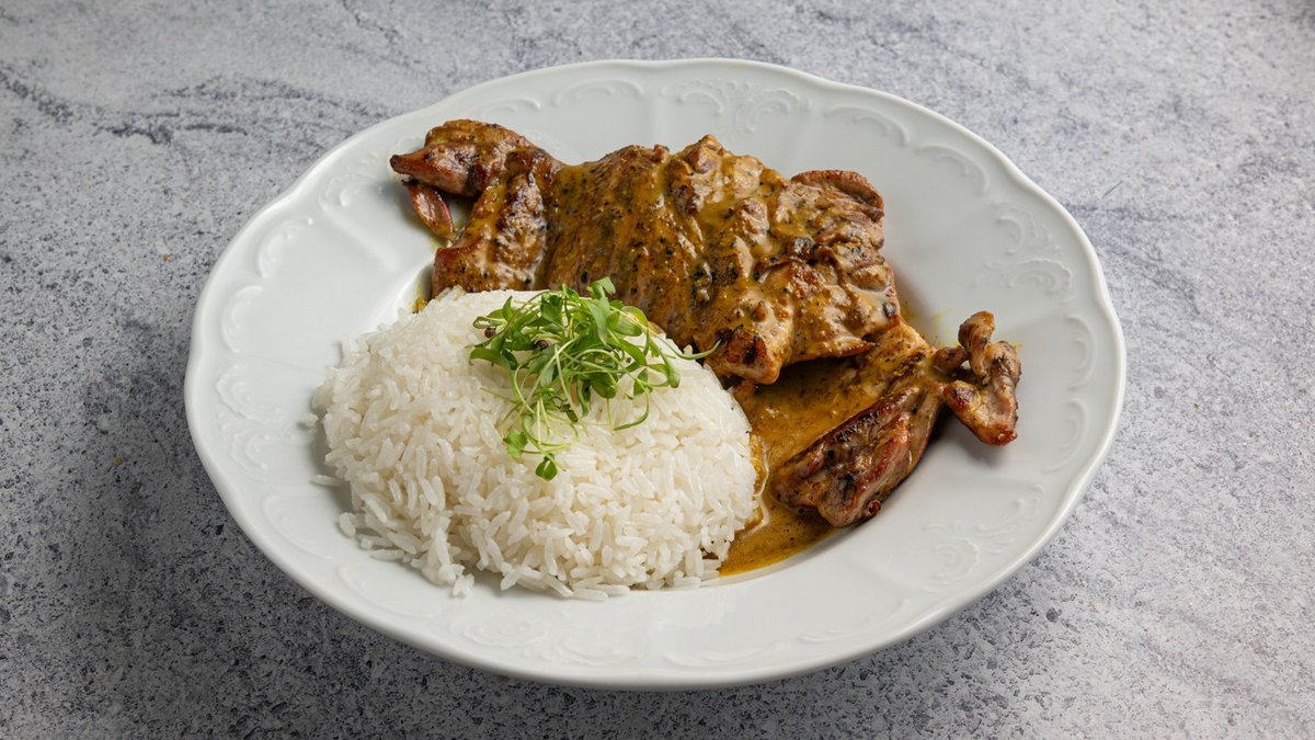 סטייק פרגית ברוטב קארי צהוב וחלב קוקוס, אורז יסמין