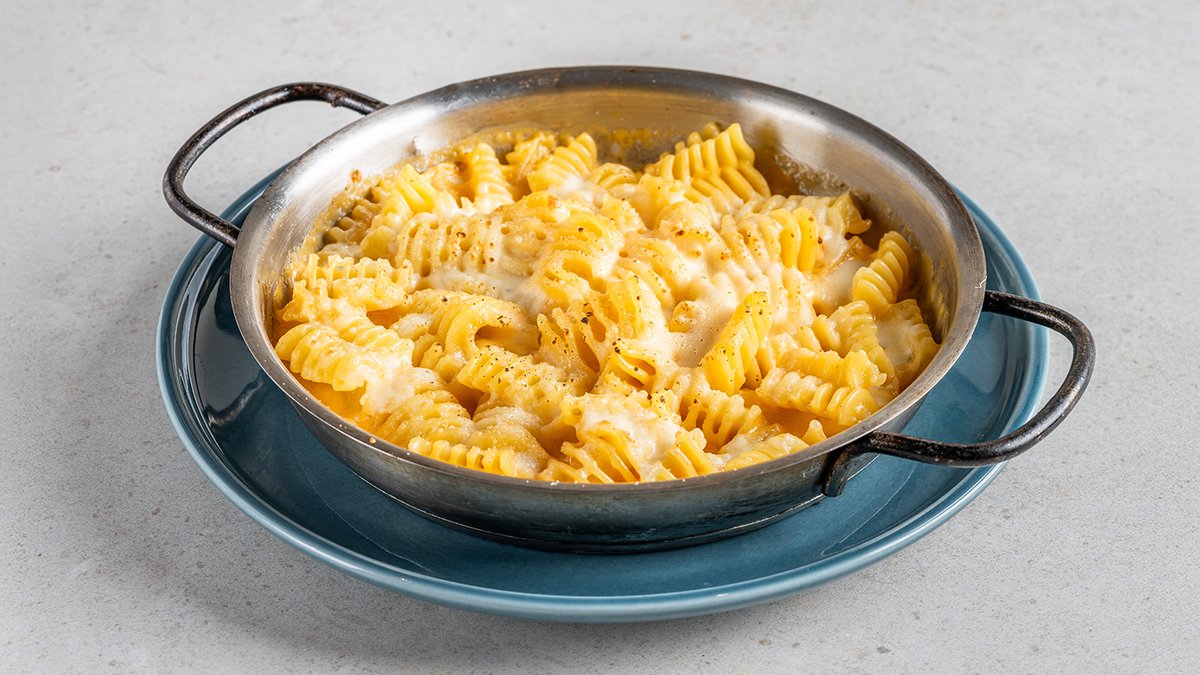 פסטה רדיאטורי ברוטב צ'דר, מוקרם במוצרלה ופרמז'ן.