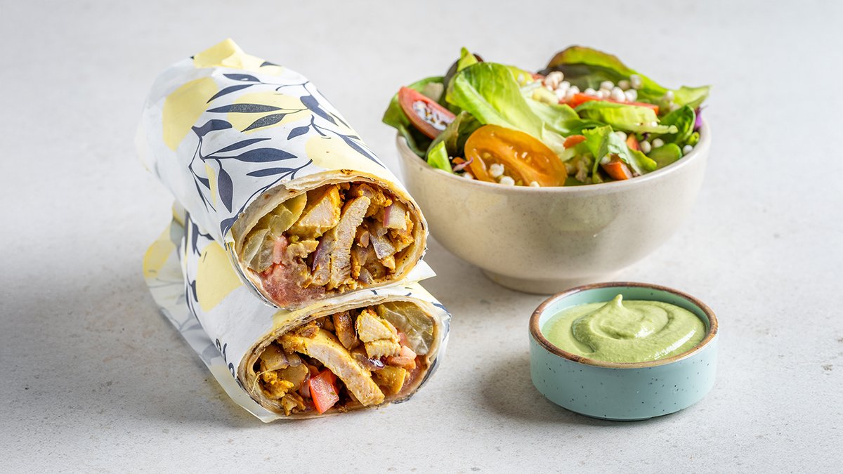 טורטייה במילוי כדורי פלאפל, חציל, ביצה קשה, תפוח אדמה, עגבנייה, טחינה, חלפיניו, כמון, פטרוזיליה וסלט אישי לצד טחינה ירוקה.