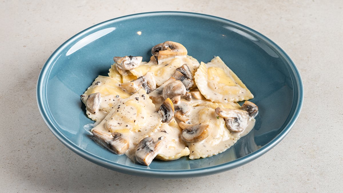 במילוי ריקוטה ופרמז'ן, ציר ירקות, חמאת שום, רוטב שמנת, פטריות וכמהין.