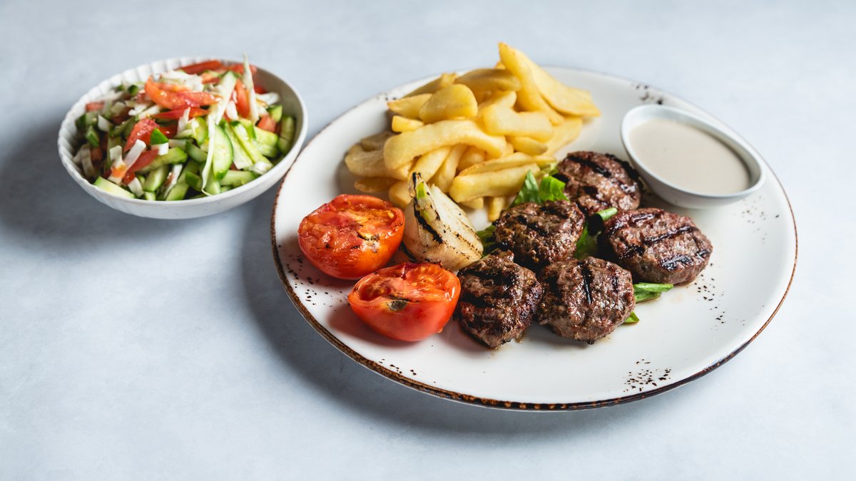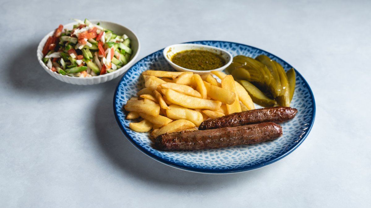 5 יח׳ קבב עם תיבול מסורתי מוגש עם סלט ירקות אישי, טחינה ותוספת לבחירה