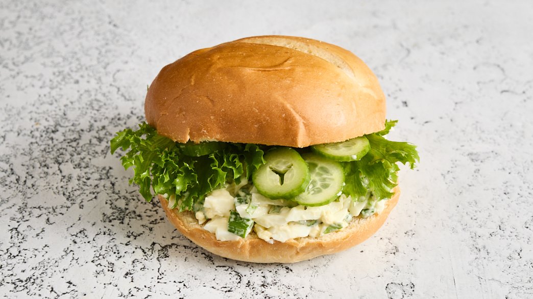 לחמניית בריוש, סלט ביצים, מלפפון וחסה