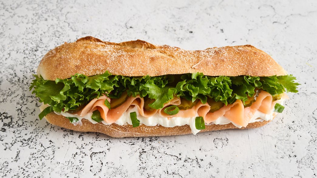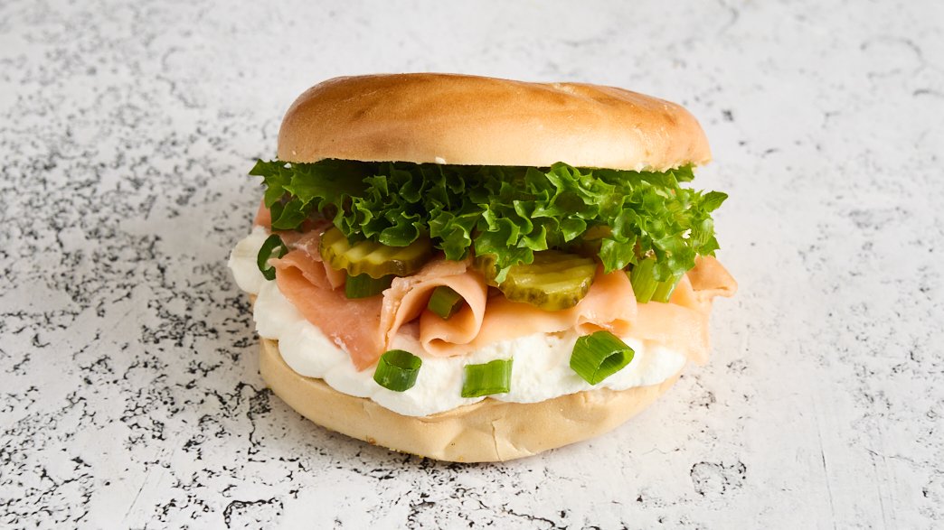 גבינת שמנת, סלמון מעושן, מלפפון חמוץ וחסה