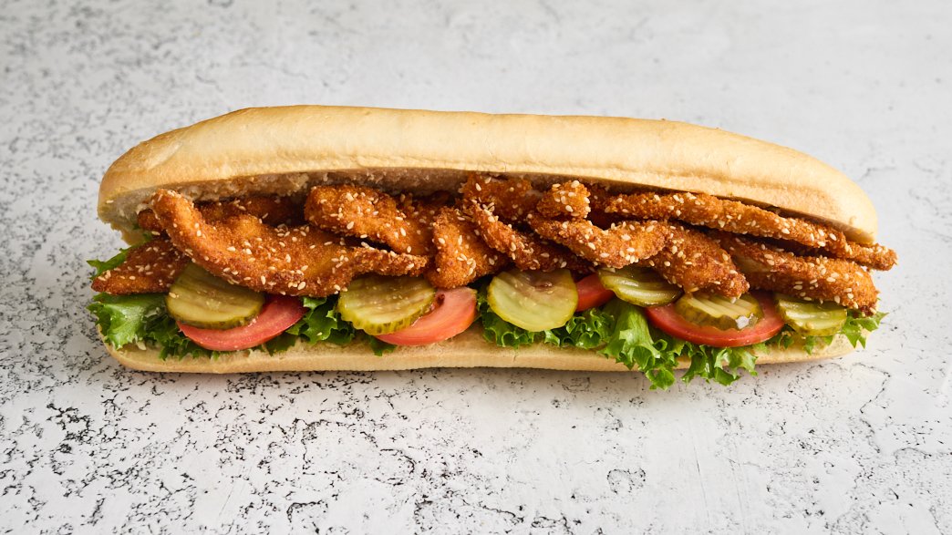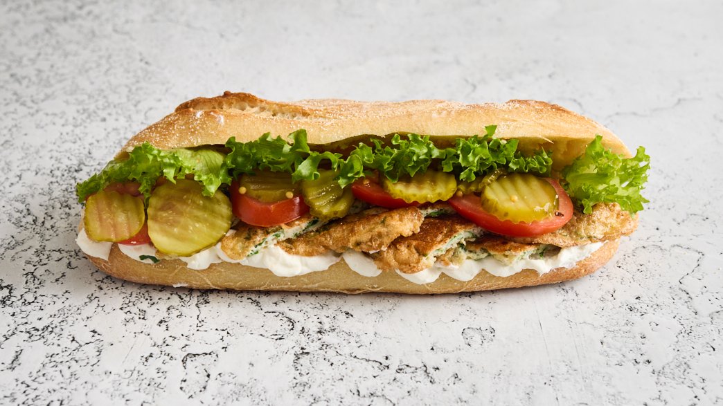 כריך שניצל מפנק, עגבנייה מלפפון חמוץ וחסה עם תוספת צד לבחירה