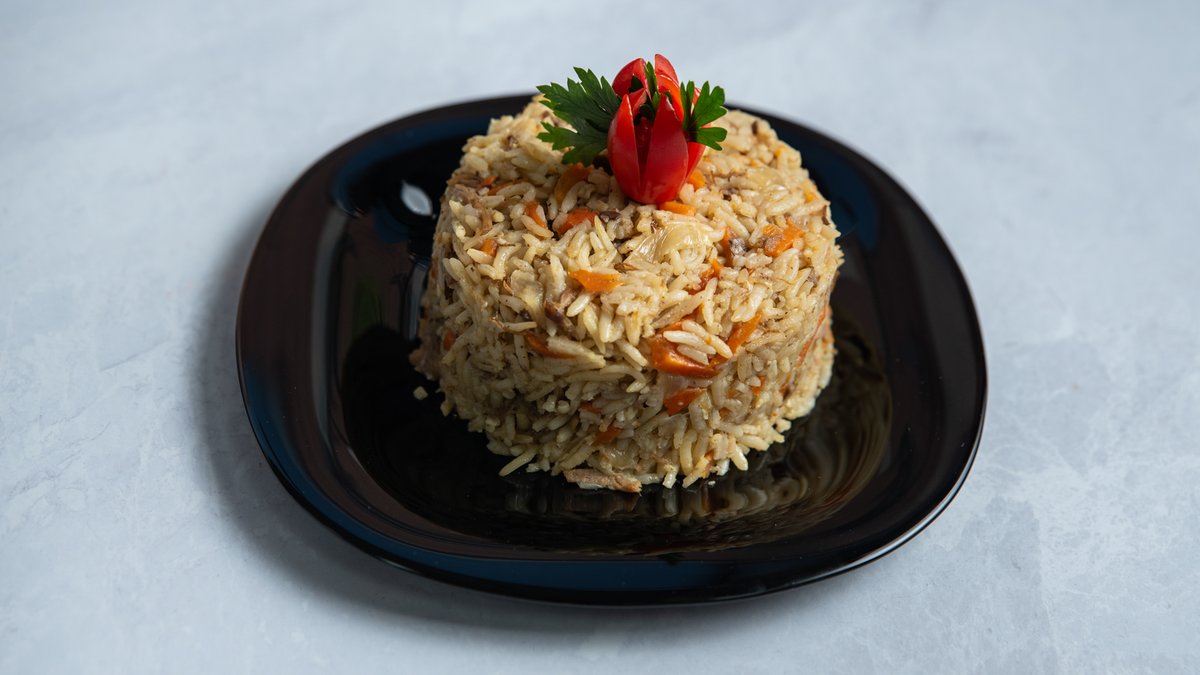 אורז, גזר, שום, בצל ובשר בקר