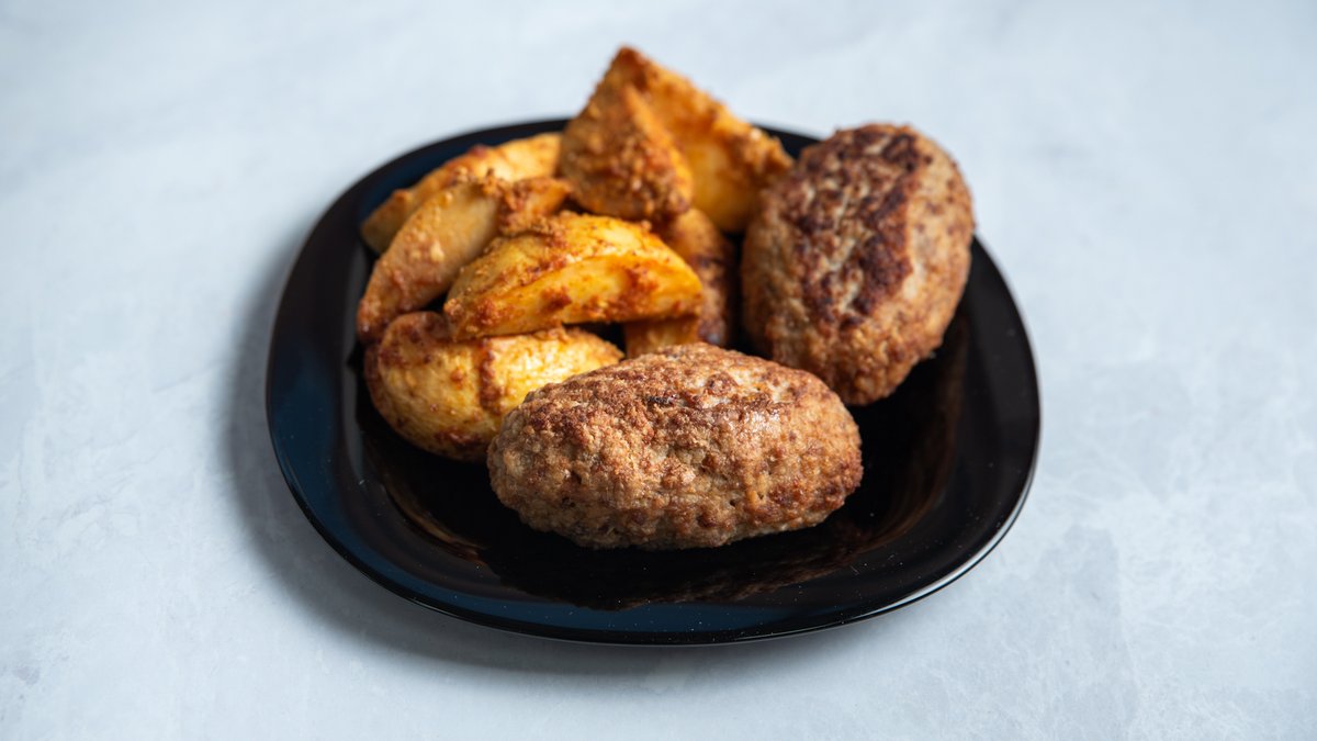 קציצות בקר עם בצל שום פירורי לחם וביצה מוגש עם תוספת לבחירה וסלט