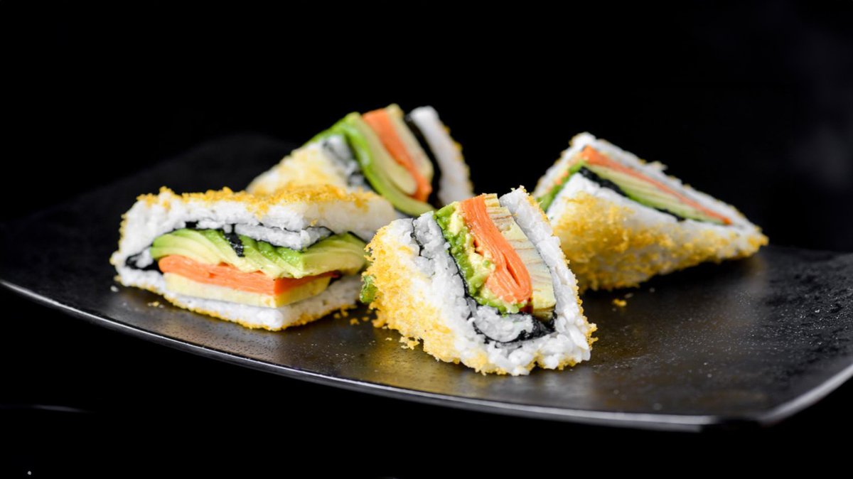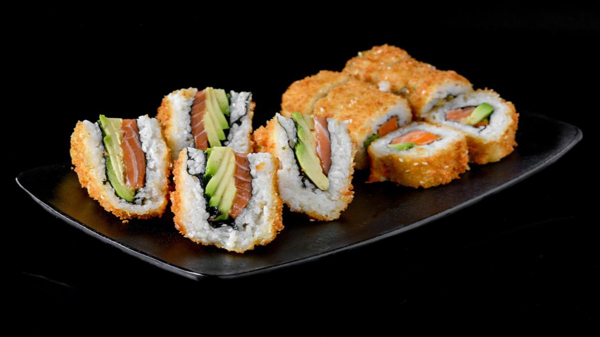8יח רול מטוגן סלמון ואבוקדו, 4יח סנדוויץ מטוגן סלמון,בטטה,אבוקדו.