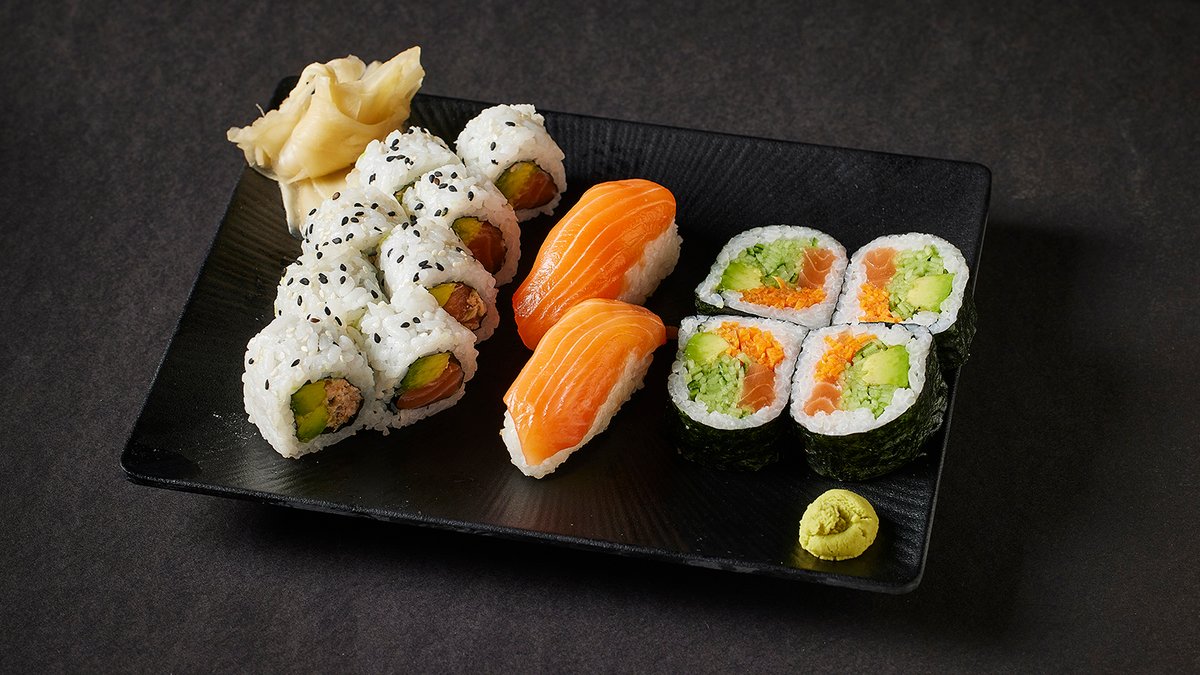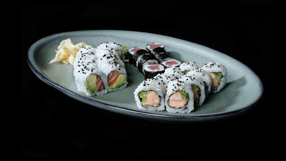 4יח O/I סלמון טפורה ואבוקדו, 2יח ניגירי סלמון, 4יח O/I סלמון ואבוקדו, 4יח פוטומאקיסלמון, אבוקדו, מלפפון, גזר