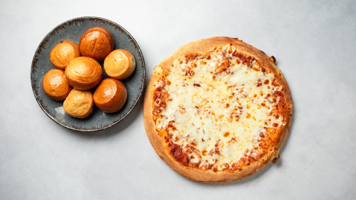 פוקאצ׳ה איטלקית עם מוצרלה, פרמז׳ן, בולגרית, שום ועשבי תיבול