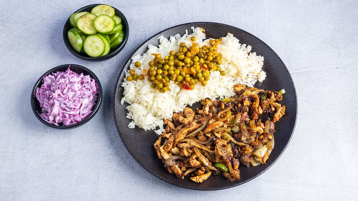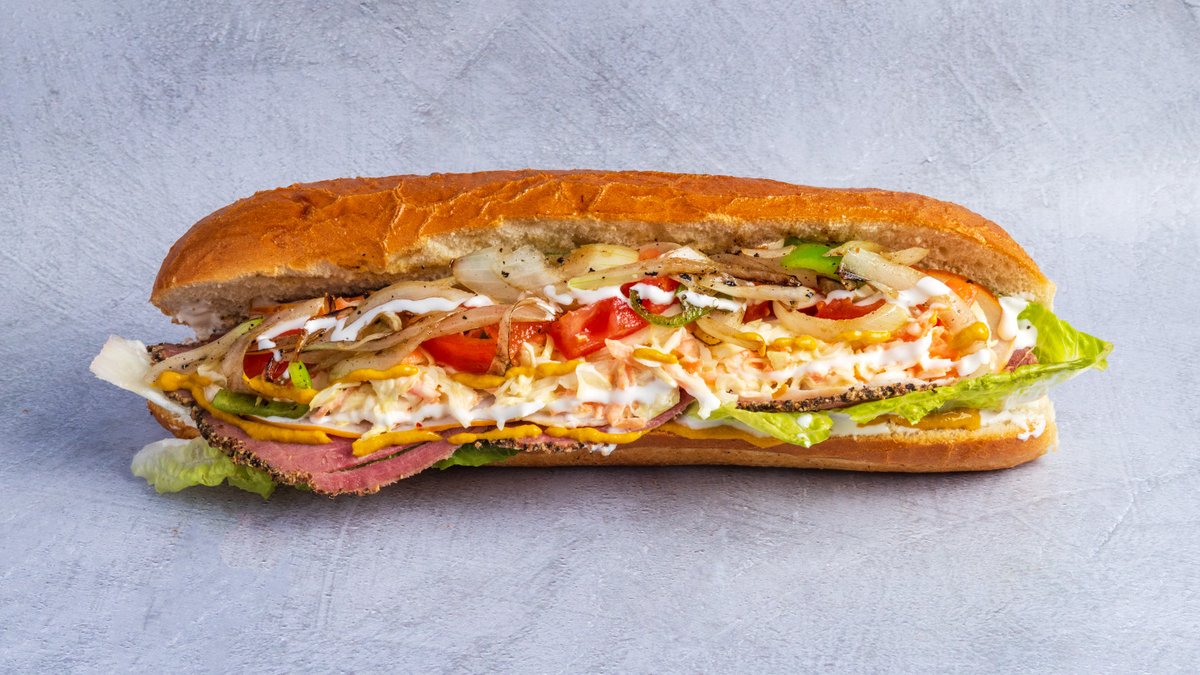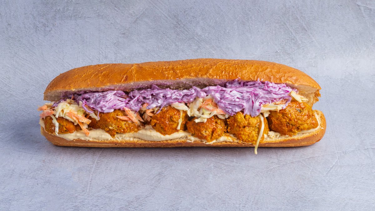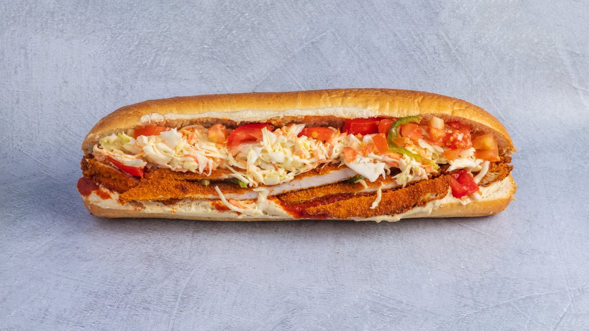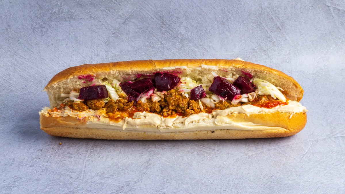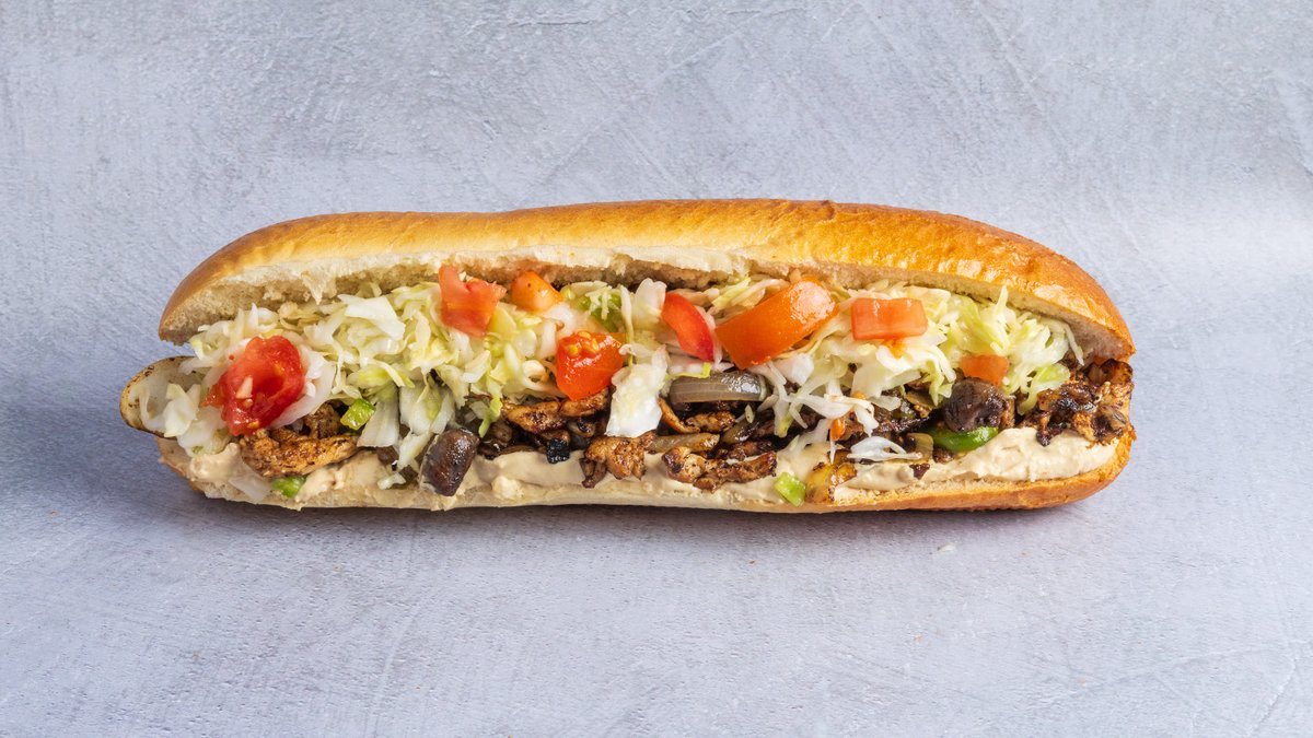 מעורב (כ-180 גרם) של רצועות עוף, טחול עוף, בצל ופלפל חריף בבגט עם ממרחים וסלטים לבחירה