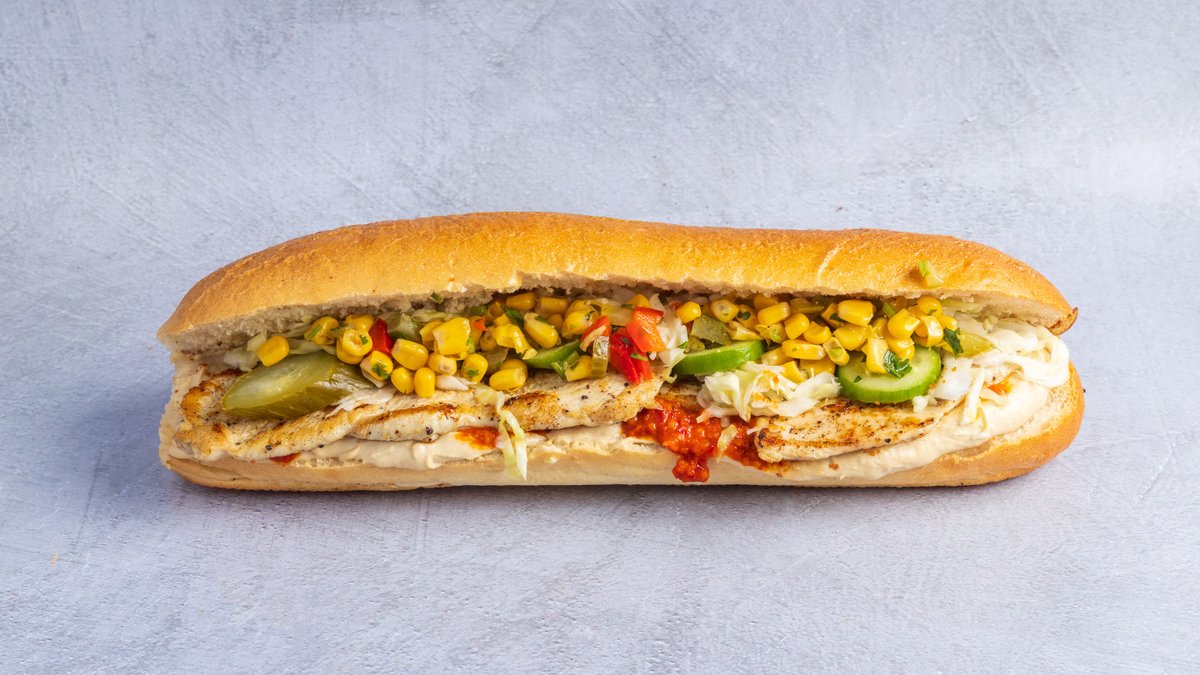 חזה עוף (כ-120 גרם) בבגט עם ממרחים וסלטים לבחירה