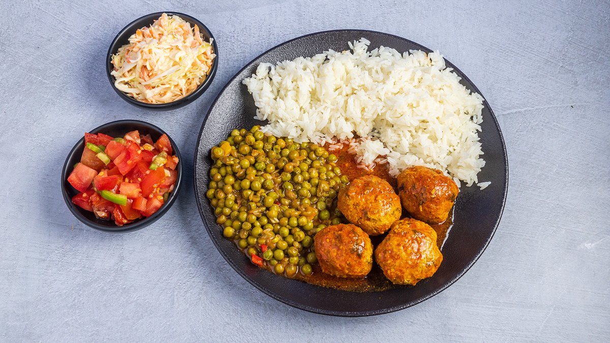 קציצות בקר ברוטב צהוב עם אפונה