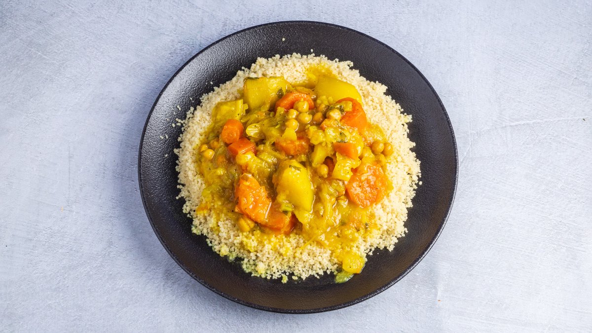 קוסקוס בעבודת יד, עם מרק ירקות וגרגירי חומוס