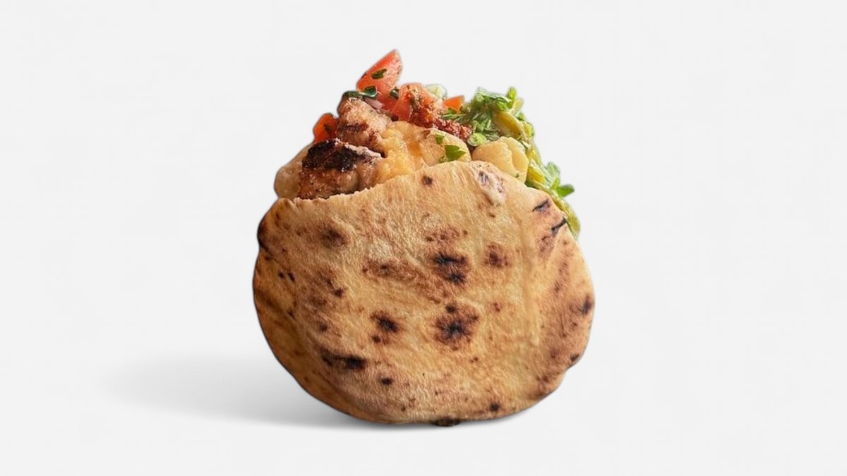 250 גר׳ חזה עוף בפיתה עם ירקות וסלטים לבחירה