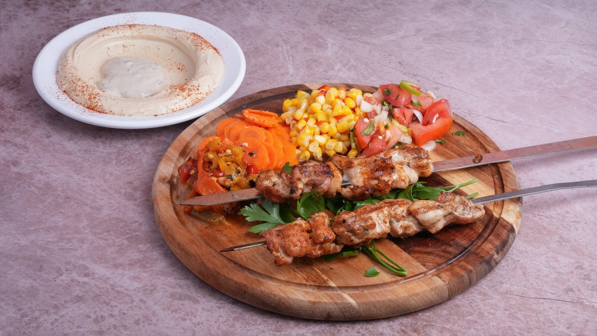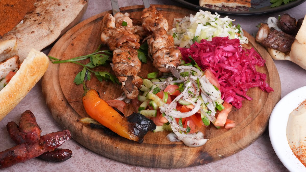 A sizzling Mediterranean grill in Haifa with a selection of juicy skewers — chicken thigh, kebab, lamb, and more