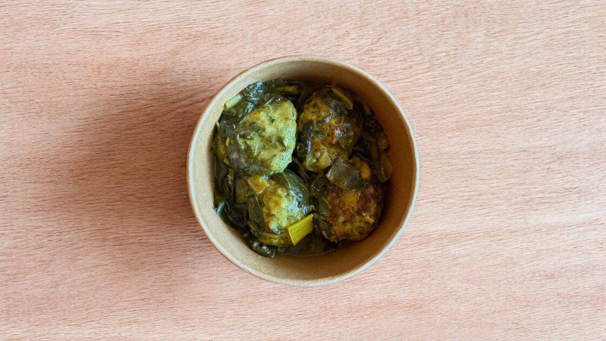 קציצות עוף וקישואים ברוטב לימון ומנגולד, כוסברה וצ'ילי עם תוספת לבחירה