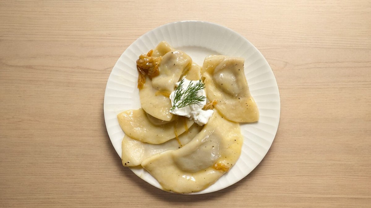בצקניות צרובות במחבת עם חמאה שום, מרווה, ירקות ירוקים, גרידת לימון, וגראנה פדנה