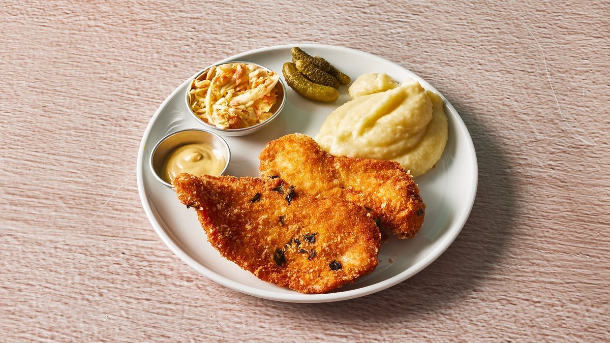 שניצל, חמוצים וקולסלאו עם תוספת לבחירה
