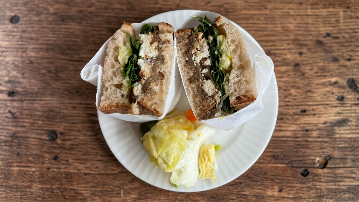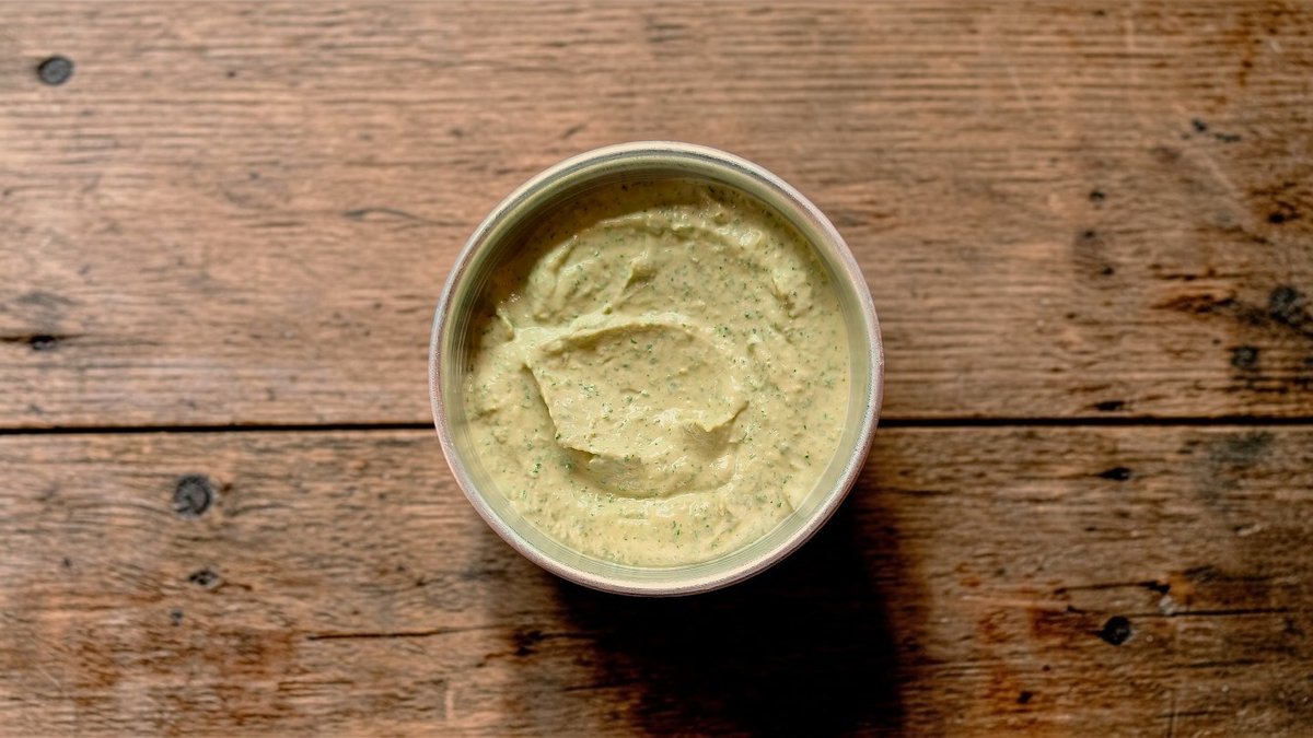 "גבינת" אגוזים אפויה, טחינה, בצל מקורמל, זעתר טרי, רוקט