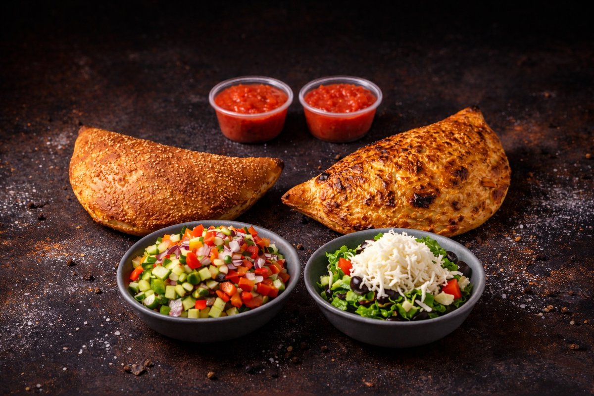 בצק סטנדרט, רוטב עגבניות בזיליקום, פלפלים קלויים, קונפי שום, גבינה בולגרית