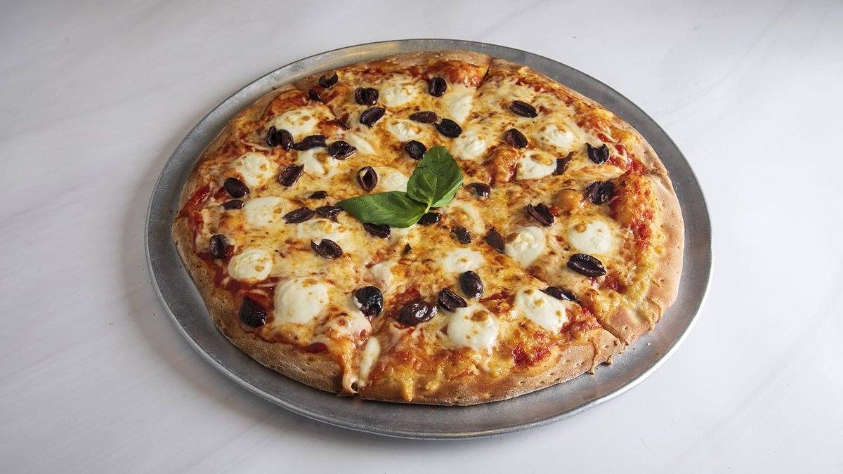 פיצה משפחתית עם כדורי בייבי מוצרלה זיתי קלמטה וגבינה
