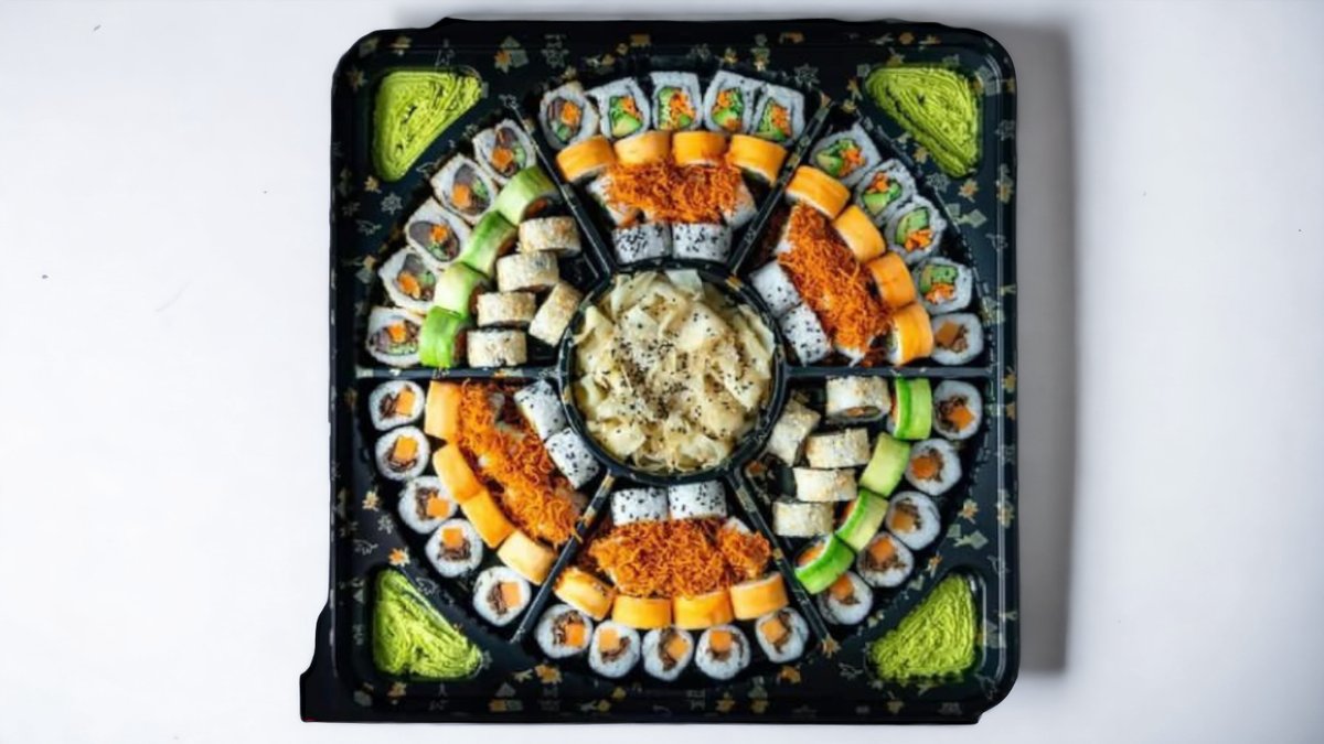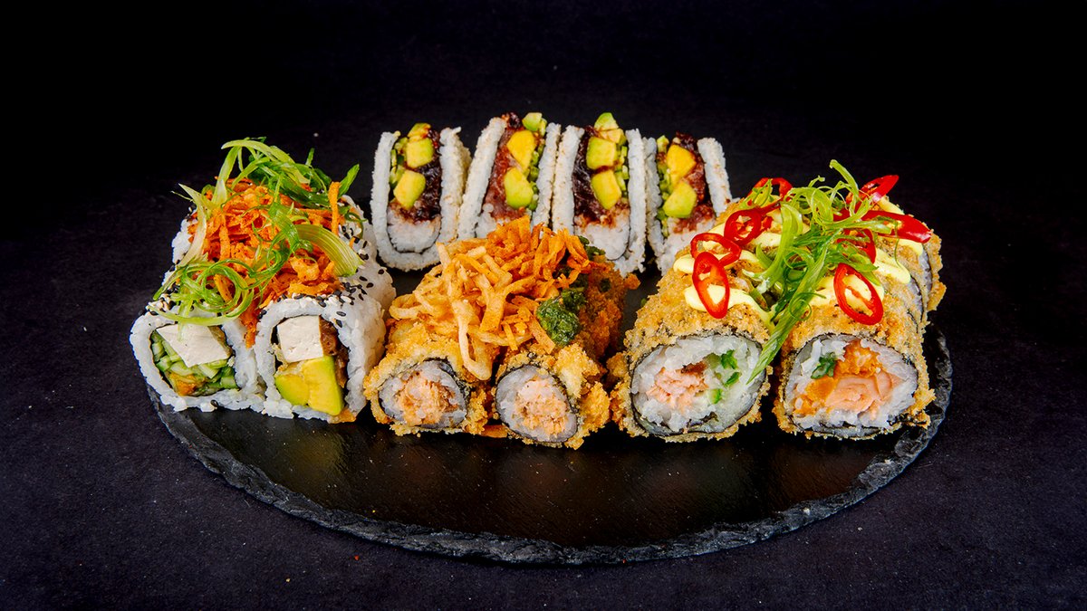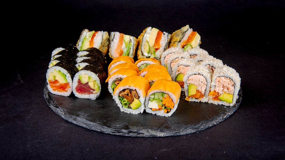 אינסיידאאוט סלמון צלוי, אבוקדו, בטטה טמפורה וטריאקי בציפוי פנקו 8 יח׳, פוטומאקי סלמון ואבוקדו 4 יח׳, פוטומאקי טונה ואבוקדו 4 יח׳, אינסיידאאוט טמפגו, גזר ומלפפון במעטפת בטטה 4 יח׳, אינסיידאאוט אבוקדו, שיטאקה ועירית במעטפת בטטה 4 יח׳, סנדוויץ׳ סלמון, אבוקדו וגבינת שמנת בטמפורה ופנקו 4 יח׳